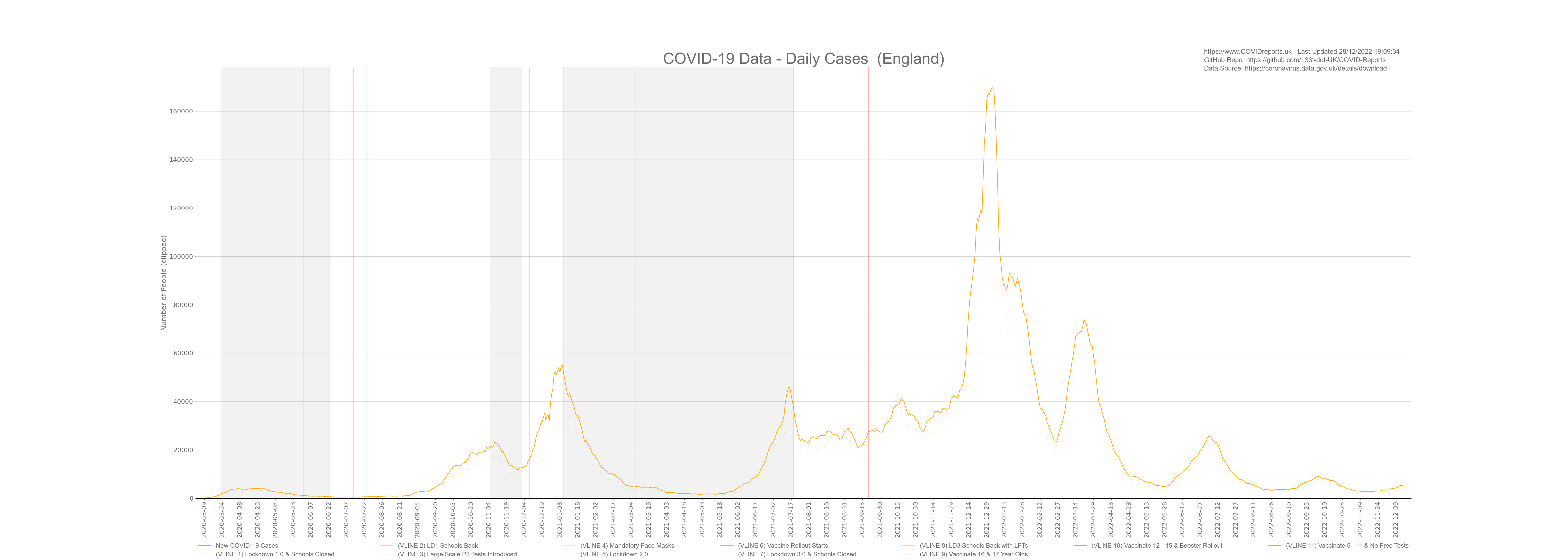 The above graph also shows the low amount of death from people with COVID, we must remember that in the UK a COVID death is someone who has had a positive PCR test within 28 days of death or displayed COVID symptoms around the time of death. COVID-19 deaths are not deaths from COVID but deaths with COVID through a positive test and not necessarily through a clinical diagnoses. For more on this visit the Testing part of this website.